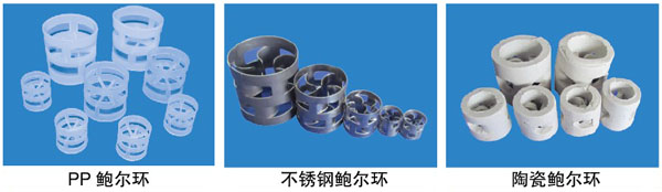 鮑爾環(huán)填料系在普通拉西環(huán)的壁上開二層長方形小窗,小窗葉在環(huán)中心相搭,上下二層窗位置交錯,因此阻力降低,氣速可提高,液相分布均勻,同樣壓降下,處理量可比拉西環(huán)提高5%以上。